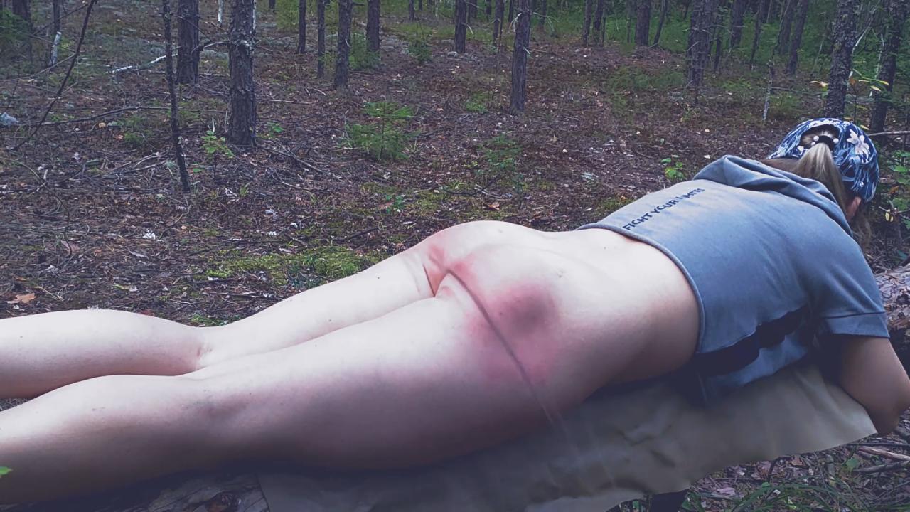 m/f spanking, birching, switching, caning, hard, domestic discipline, corporal punishment, maledom, amateur, red ass, outdoors , forest