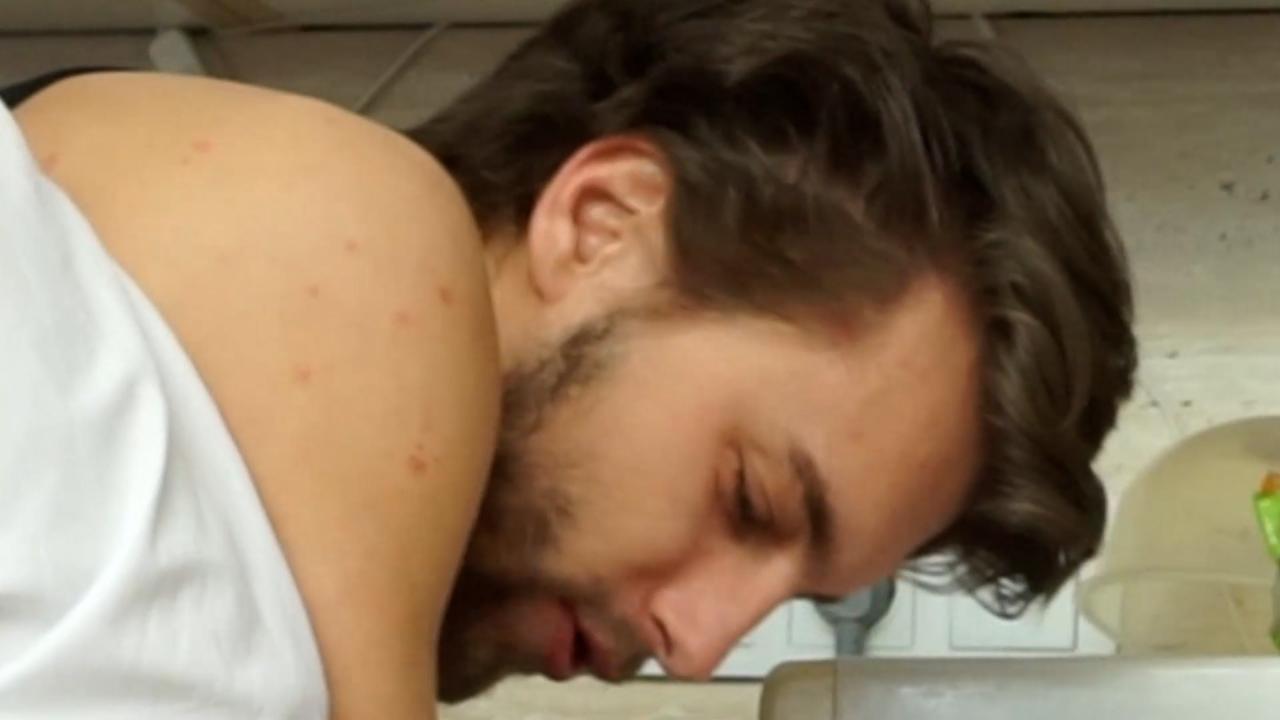 Dimitri has to deal with a very sullen looking Leos, or is it surely, either way he looks like a lad that needs a spanking. Dimitri gets him bent over the counter and sets about dishing out the spanking. Leos must have been in a rush to dress in the morning because when his warm up on the jeans is over and they come down he is going commando and is bare ass for the next set. The leather paddle is applied well by Dimitri and Leos is protesting and looking round to to see whats coming for his rear. He is in such a rush to leave at the end that he waddles off with his trousers around his ankles with stopping to pull them up.