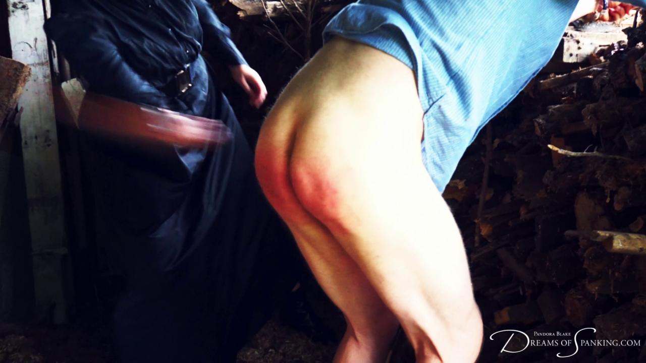 It takes a lot of work to keep a big house running, and any good housekeeper knows the key to success is keeping the servants in line. When Theo the garden hand neglects his orchard duties, then, there’s only one thing for it! He’s hauled back into the woodshed and made an example of, with his sound strapping carried out right where any passer-by could see it. When it’s done he’s not permitted to hide his sore backside straight away: instead Blake has him keep it on display for five full, excruciating minutes, his cheeks as red as the apples he neglected to pick.