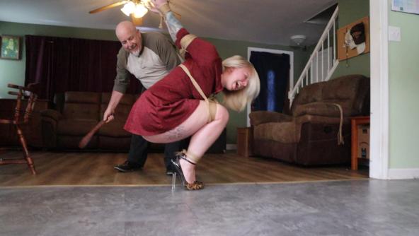 Our old friend Jim Hunter comes to visit the studio and Vivica is very excited. It's been almost a decade since he's lumped her up in strict bondage and he doesn't go easy on her. Tying her in an extremely challenging chair tied strappado, but Jims got another trick up his sleeve as he pulls the chair away leaving her to endure an even more grueling position, Vivica struggles to maintain her balance in her stiletto heels, as her legs begin to strain and buckle beneath her placing all her weight on her arms stretched high behind her back. Finding an old belt Jim tans poor Vivica's ass as she curses out at him.