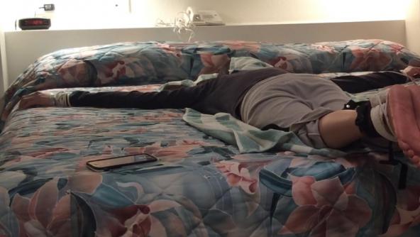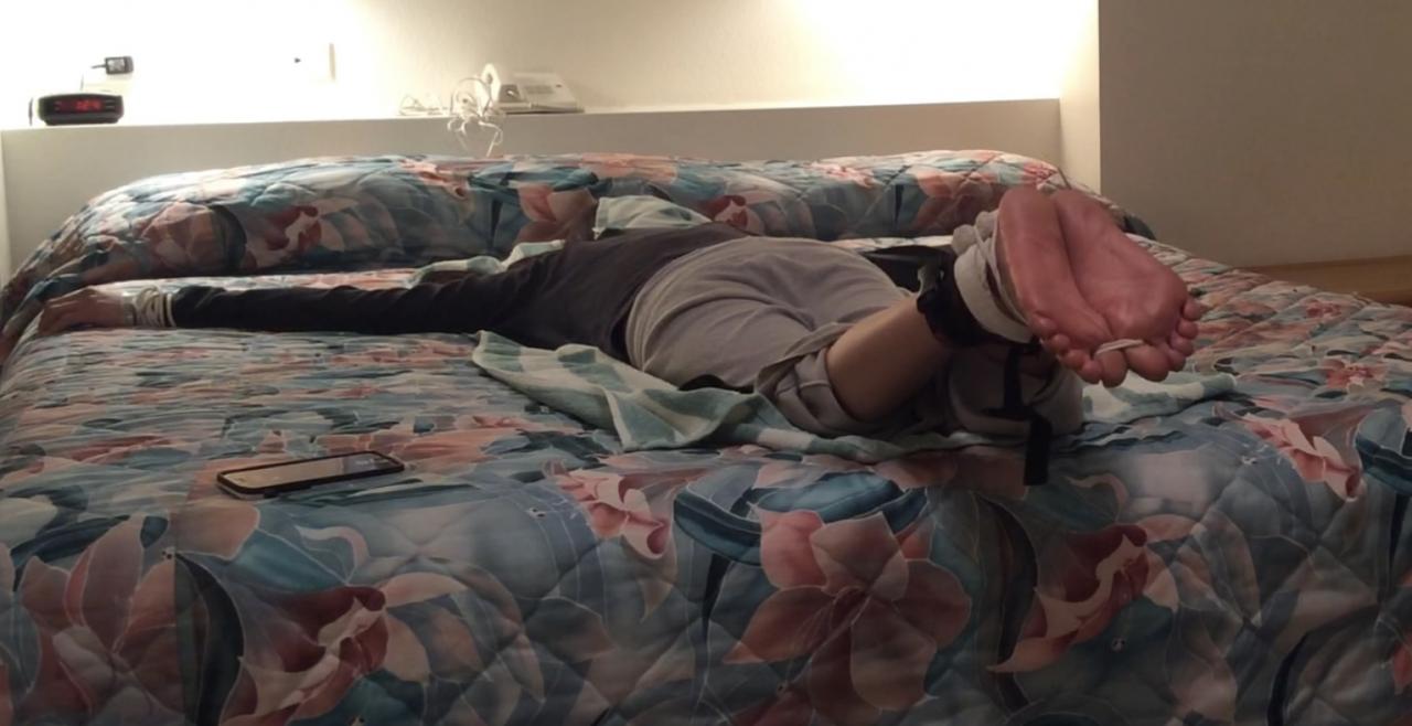 Gianna makes her long awaited return to her master in this late night 2018 clip. She begins the session in the spread tie punishment position, with her ankles and big toes already bound for the beating they will take. She’s given a small warm up before her size 6.5 Asian feet and soles are punished with a little more impact. Her master rotates from side to side lashing her bound bare soles. After about a minute and a half, Gianna finally lets out some moans as the thin whip is stinging her Asian soles more than her warm up was. He grabs her bound ankles and whips her naked soles with 6 good lashes while holding them in place. He then pulls her pants down a little so that her naked ass can take some lashes of the whip as well, as he beats her submissive soles for the final few minutes. A solid session that has a second part coming soon, with a better angle!