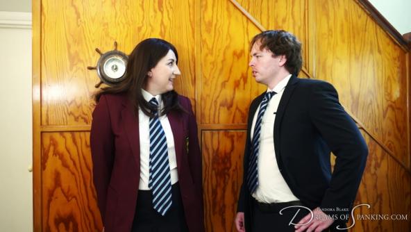 Pandora Blake, School Girl, OTK, Domination, British, Lingerie, M/F, Spanking, BDSM, Hand Spanking, Cornertime, Belt