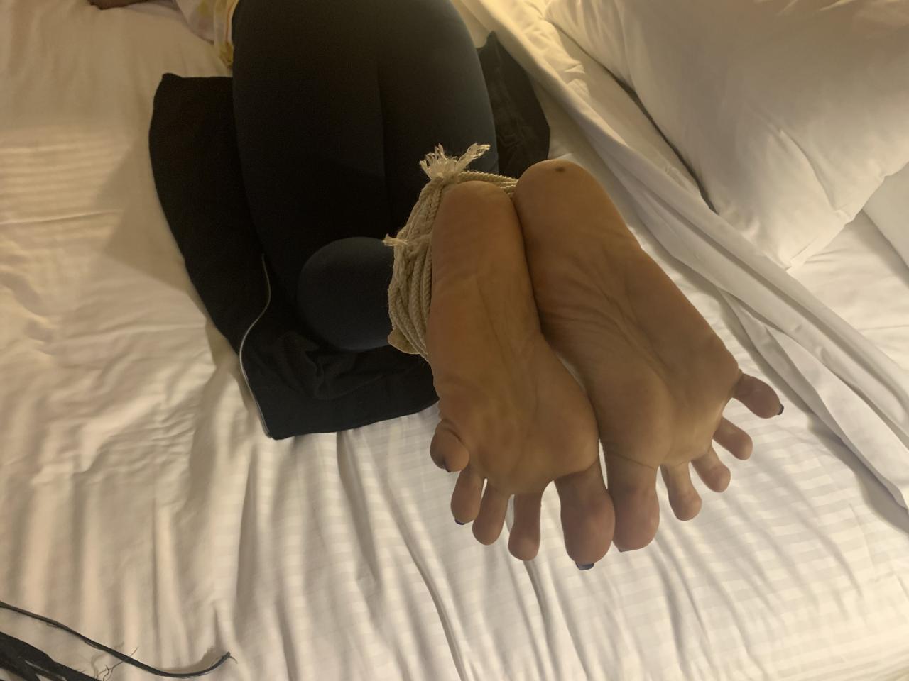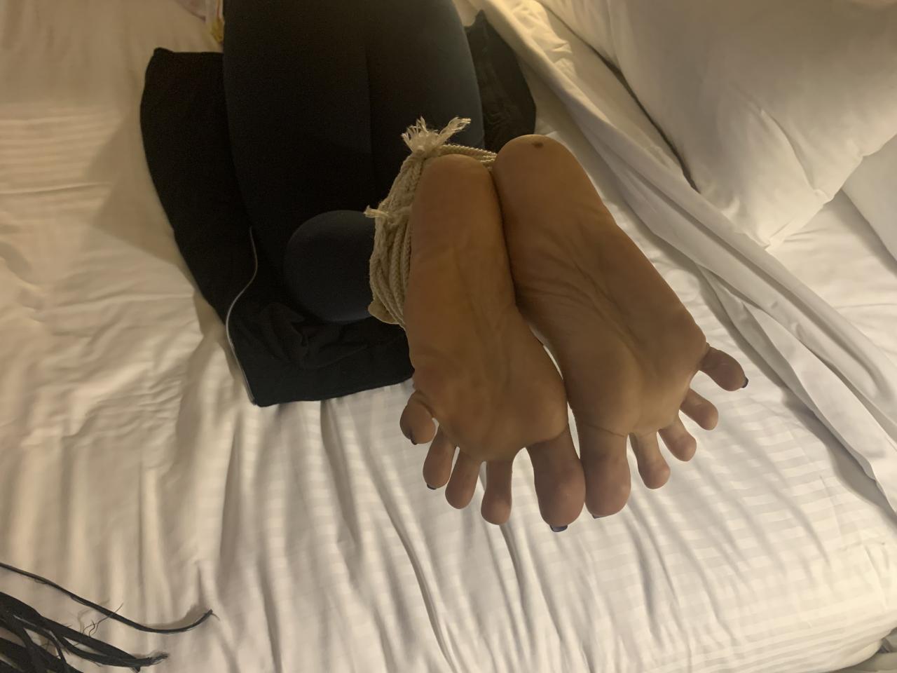 Chenalfeet also known as Solestroker and cloud9soles in the FFC is a tall slim ebony with massive size 11 feet and soles that are very well known in the community. We had been following each other for a while and finally made a Bastinado session happen, which did not disappoint. Chenal arrived in sandals, so she begins the clip barefoot with her ankles bound awaiting her first strokes. She even playfully says, “thank you may I have another” after the first lash is given. She does a pretty good job keeping her soles in position as they are beaten for almost 2 minutes straight to begin the clip, although she does mention that it felt like one of her soles was taking more punishment then the other. Master Fetish Legend uses the thin whip which carries more of a sting for her second set and also handcuffs and hogties Chenal to add more bondage to her first Bastinado experience. The camera gets multiple different angles of her big feet and soles in bondage, as well as them being punished for over two and a half minutes before she is given her final break of the session. She’s uncuffed, but her two big toes are tied together for the final set of lashes from the whip she would take solo in this session. She again does not disappoint showing off very good tolerance and versatility as a submissive, and taking solid strokes of the whip while showing off her big long size 11 Ebony feet and soles! One more with her and Solequeensworld in a collab sesh still to come!