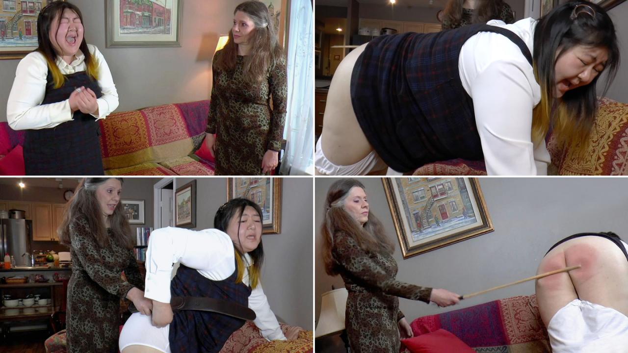 Birdie's been acting out, hanging with the wrong crowd, and Mom's had enough! It's time for a change, and that change comes in the form of a private school with a reputation for old-fashioned discipline. But before Birdie's first day, Mom wants to make sure her misbehaving girl knows what's in store for her if she continues down the path of disobedience. Armed with spanking tools and instructional videos from the school, Mom takes matters into her own hands. In a stern and unyielding display of authority, she straps Birdie's hands and bottom, preparing her for a punishment she'll never forget. The caning that follows is a harsh reminder of the consequences of misbehavior, and Birdie is left sobbing and submissive, her bottom aching from the relentless strokes.