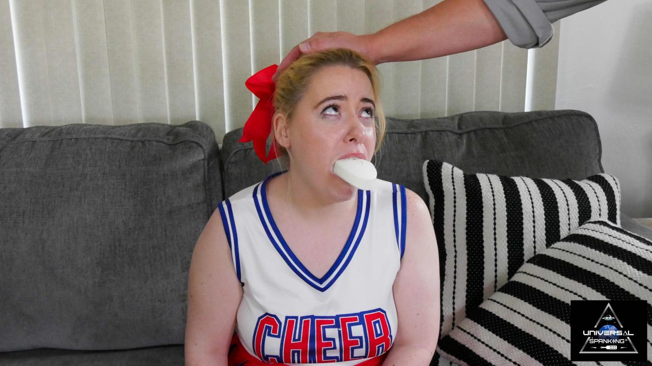 leather paddle swats, humiliating mouthsoaping, glowing red bottom, bare bottom spanking, cheerleader punishment, naughty cheerleader, wedgie spanking, hot spanking action, painful otk swats, step-daughter paddled, Alice Marchesi