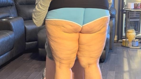 DiDi straddles this poor Sissy’s head and generously shares her big leather strap with a thong clad bottom. Two angles, one showing a sissy butt getting spanked. The other shows DiDi’s big jiggly bottom as she administers this strapping.