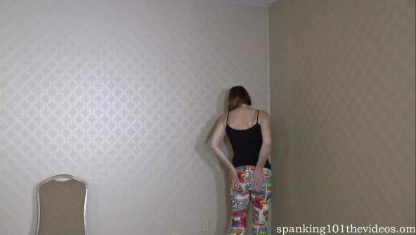 Naughty Dutch girl Ana L, her bottom already ablaze, is called out of the corner, bottom bared, and spanked hard before being sent back to the corner.