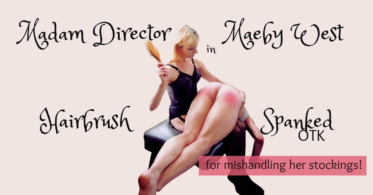 Madam Director has tasked Maeby West with caring for her stockings. The stockings are incredibly delicate and must be hand-washed. Madam has warned Maeby that if any of her stockings become damaged in the process, she will be in trouble. Madam notices a run in a stocking. She informs Maeby that the consequences for this will be twofold. Maeby’s first consequence is reassignment to a different task. She is unfit for the delicate and essential duty of stocking care and will never handle Madam Director’s stockings again. Maeby will also receive a punishment: a spanking. Madam Director takes Maeby over her knee and spanks her. She scolds her for her carelessness while she spanks. Madam spanks Maeby with the hairbrush. Maeby squirms and fusses. She kicks her feet. Madam ends Maeby’s spanking with a warning. Finally, Madam Director makes Maeby sit on her spanked bottom and darn the stockings that she will throw away right after. Madam will not wear a darned stocking, but she wants Maeby to show her, with her stitching, that she can produce high-quality, delicate work. Once Maeby has painstakingly mended the stocking, it will be immediately discarded. (9:58 long) Clip Contains: Maeby West, Madam Director, Female Domination, Spanking F/m, Stockings, OTK Spanking, Hairbrush Spanking