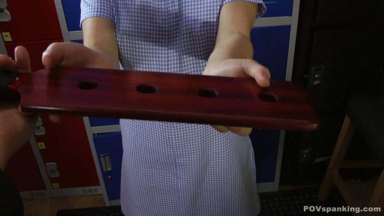 rosie ann, schoolgirl, pov spanking, pov, povspanking, wooden paddle, paddling, scolding, nervous girl, cute schoolgirl uniform, gingham dress
