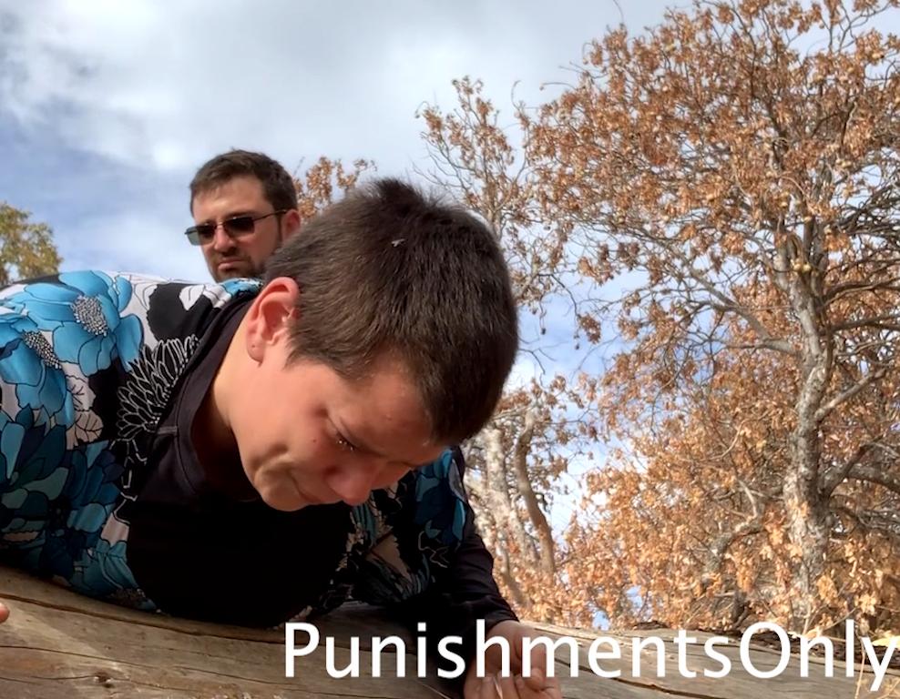 Remember Keagan? A decade ago, she blew up the spanking video world as an adorable 18 year old girl. Well, she's back! And she's still as cute as a button! (Also, she's a lot of fun to hurt.)....... Keagan and I are camping in the foothills of the Sierra Nevada mountains, and this stubborn girl is walking around barefoot. This is dangerous for obvious reasons, so when I catch her doing so, I take her to a nearby log, pin her over my knee, pull down her pants, and give her a thorough spanking. This is shown from the bottom camera angle and the face camera angle........ That's the end of part 1........ Part 2 begins as I find Keagan hanging out a few hundred yards away, still not wearing any shoes. I'm flabberghasted; I had just given her a spanking for that exact reason. She tries to get cute, but is immediately bent over for the bath brush. Then I take off my belt, and I have her count without letting her know what number she was counting to. At one point, when she is struggling to compose herself well enough to count the next number, I just start laying into her with the belt over and over. The same thing later happens with the paddle........ All in all, Keagan gets well over 100 with the leather belt, and around 100 with the clear lexan paddle. She is sobbing hysterically well before it's over -- her first time ever crying on camera!....... Let me just repeat that: this is Keagen's FIRST TIME EVER CRYING ON CAMERA!....... These are all shown only from the bottom camera angle. The face camera angle of this extensively long punishment is in part 3........ Following the Face Cam POV, Keagen is then made to sit her swollen bottom on the Behavior Reflection Stool and write 100 lines about always wearing shoes outside. This is mostly shown via time lapse so the viewer doesn't suffer the same mundanity as Keagen. There is then a slow motion montage of her round bottom being beaten into a pulp.