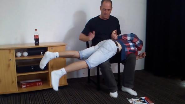 True to form Gerry cant resist stealing from the local shop. He buys a coke but helps himself to a few other items. Tony confronts him at home and when he unzips his top some magazines fall out. Gerry has to be taught not to steal. So he is dragged OTK first for a spanking on the jeans. Gerry is then Told to drop his jeans and bend over the chair for a set with the belt. This is followed by an OTK on the underwear. His underwear is pulled down and he gets a good spanking on the bare ass. To finally make the point that he has to mend his ways Gerry is told to bend over the chair for a final set with the belt on the bare ass.