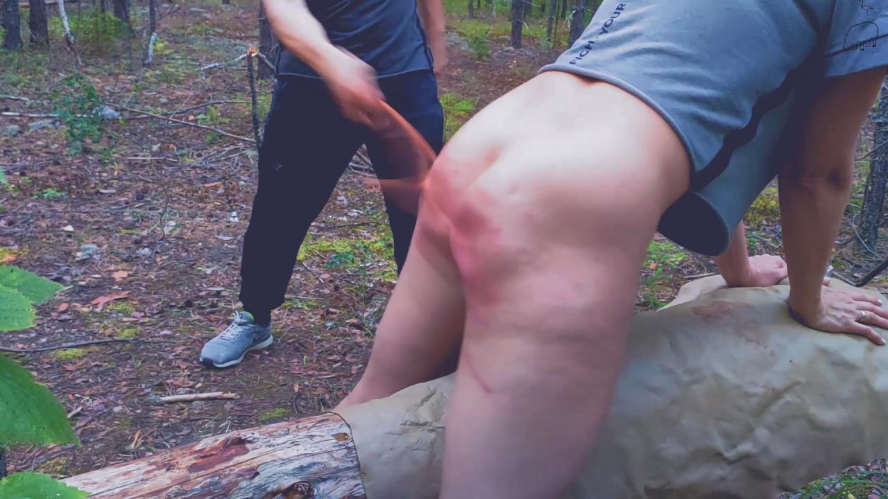 m/f spanking, birching, switching, caning, hard, domestic discipline, corporal punishment, maledom, amateur, red ass, outdoors , forest
