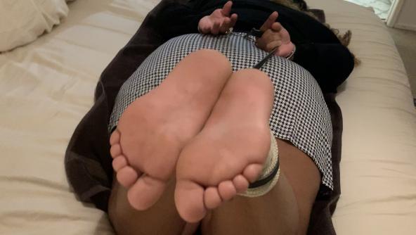 Studio GOAT Mia returns again and begins this clip with casual business dress clothes on, handcuffed, hogtied and with her socks still on as her meaty stinky size 8 latina slave feet and soles are about to be used for her masters pleasure. Her soles are given a light warm up with her socks on for about 20 seconds before it’s time to remove Mia’s socks and lash the naked bare soles for the remainder of the warm up. Mia is an experienced submissive so after a minute her soles are whipped more severely to please her master. She starts to whine and moan knowing her punishment is only beginning for her slave feet and soles. Her helpless soles are beaten for almost 3 minutes straight before Master Fetish Legend grants her a first break. Multiple angles of Mia’s bound soles are shown during her Bastinado punishment and you see how clean her size 8 latina soles are, as she purposely arrived to the session that way in hopes of being punished less by her master. After another 2 and a half minutes, Master Fetish Legend decides it’s time to tie Mia’s two big toes together for the remainder of the session. Her submissive soles are beaten over and over with such little time in between strokes that Mia begins to wonder if she has the tolerance to keep up. You can hear her call out master in a plead to have him show mercy on her. She spreads her toes to please him and he finally gives in using her thick size 8 latina slave soles as pads to soak up his cum up, as he drenches her battered whipped beaten soles to end the clip.