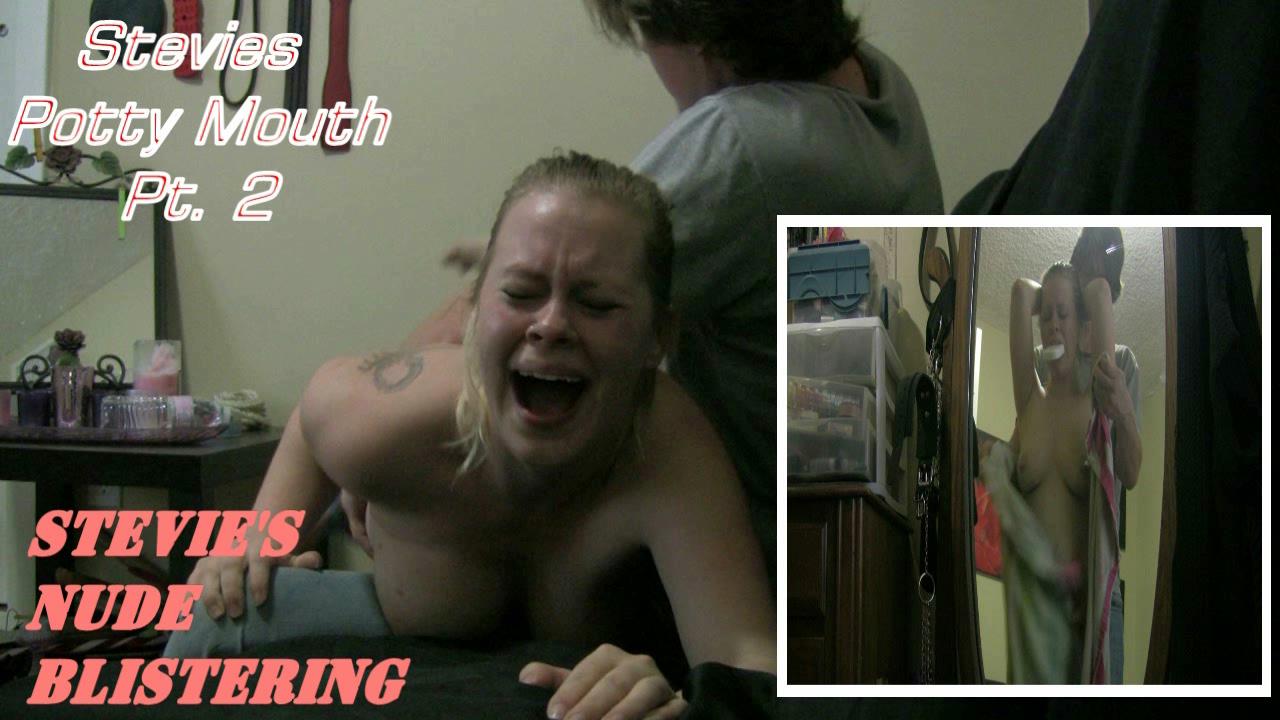 "Stevies been having a bad mouth so Kyle calls her into the bathroom when shes about to take a shower, gets out a bar of soap, and makes her stick it deep into her mouth He then strips her completely naked and tells her to keep the bar in her mouth til after her shower and then he will take it out and blister her butt with a fiery spanking after, and when the scene starts, Stevies towel is pulled off of her and she is taken OTK for a blistering with her soap covered toungue howling as her bottom is beaten a deep shade of red with hand and implement alike! Stevies mouth will NEVER be that bad again!"