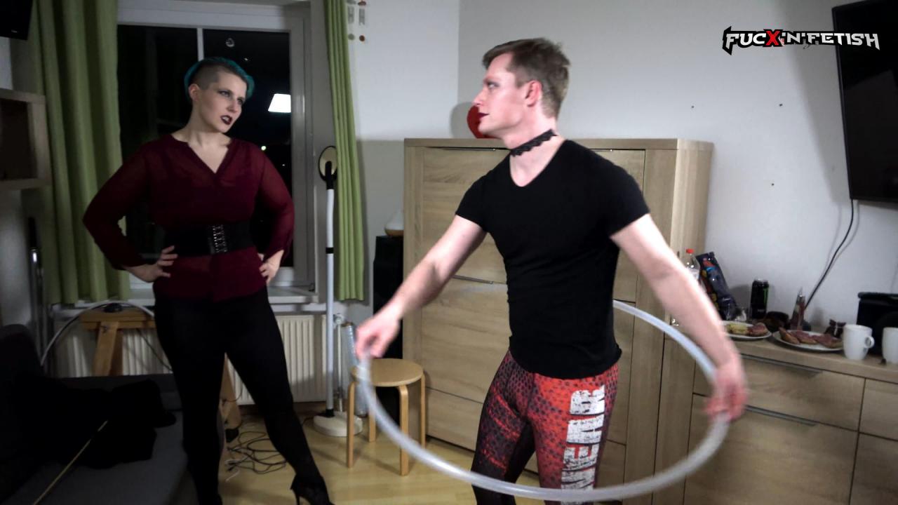 I love dominant women. I do. But I hate when they let me dance for humiliation! I hate dancing. Why must she bring a hoola hoop to my place? Isnt it enough she feeds me like a boy and has my body to pain me? No! She must put me in a leggins, paint my face like a girl and let me dance! Bravo. Now I can guess what happens if I disappoint her. Because she brought a cane too... Models: Amelia Punk, Johnny Language: GER Subs: ENG Duration: 20:09min Caning intensity: Medium
