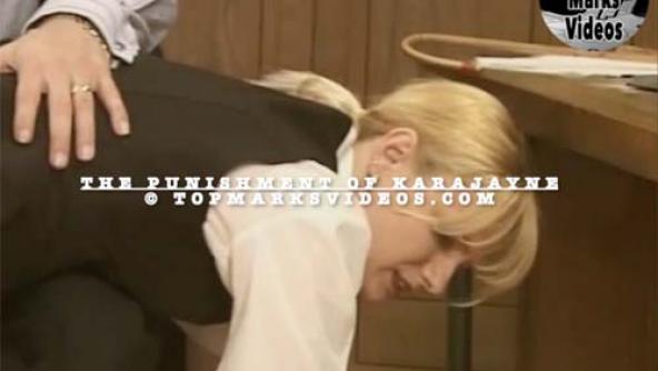 Featuring Donna as Baker, Brigella as Saunders, KaraJayne as head girl Carter, and Colin Tersley as Headmaster Mr. Forder. After spanking and strapping the two schoolgirls, KaraJayne canes them on their bare bottoms out of spite. Previously in the video A Lesson From Head Girl KaraJayne Mr. Forder, the headmaster, has left head girl KaraJayne in charge of Baker and Saunders while he attends a meeting with the deputy headmistress, Mrs. Jones. Seizing the opportunity, she spanks, straps, and paddles the two girls. Previously in the video Baker's School Lesson Donna Baker has arrived at school and been caught with a packet of cigarettes, having previously been caught and warned about the consequences of being caught again. Previously in the video KaraJayne's Lesson KaraJayne was left in charge of a class of new pupils but was unable to control them, resulting in the girls shouting and screaming and disrupting other classes. The headmaster summons her to his office, where she is soundly spanked and strapped. Please note this clip is from the Top Marks Video Archives; the quality is not up to the HD standard of videos produced today. "Caned By Head Girl KaraJayne" (2002) is a short erotic corporal punishment film written and directed by Cliff James, owner of TopMarksVideos.com