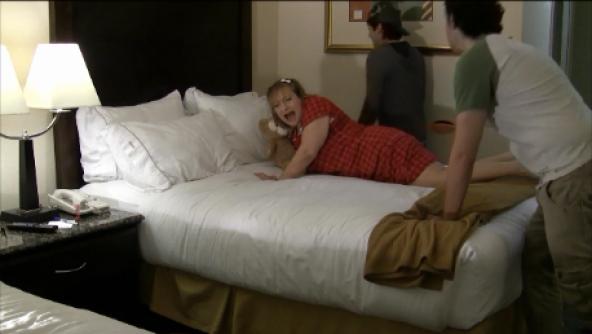 Lily and her stepbrother Ken (Kenneth Dukes in his first video) are on a two day trip to Disneyland with their Dad (Alex Mack) and are playing and having snacks in the hotel room before bed after their first day in the park. Lily is cuddling her new teddy bear that she got at Disneyland, and when Ken tries to grab it away so he can play with it, she doesn't want to share. They start to fight and Dad steps in but they still refuse to agree or share and aren't listening to him so he decides that they need a spanking. He orders them both to the bed to lay down side by side for their punishment and gets the hairbrush to teach them a lesson. The two continue to fight and be bratty, but eventually Dad, the brush and some corner time get through and he makes them apologize to each other and play nice. Very cute age play clip with a good amount of M/F and M/M spanking. Enjoy!